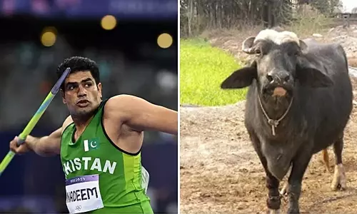 தங்கப்பதக்கம் வென்ற நதீமுக்கு மானார் எருமை மாட்டை பரிசாக வழங்கினார்