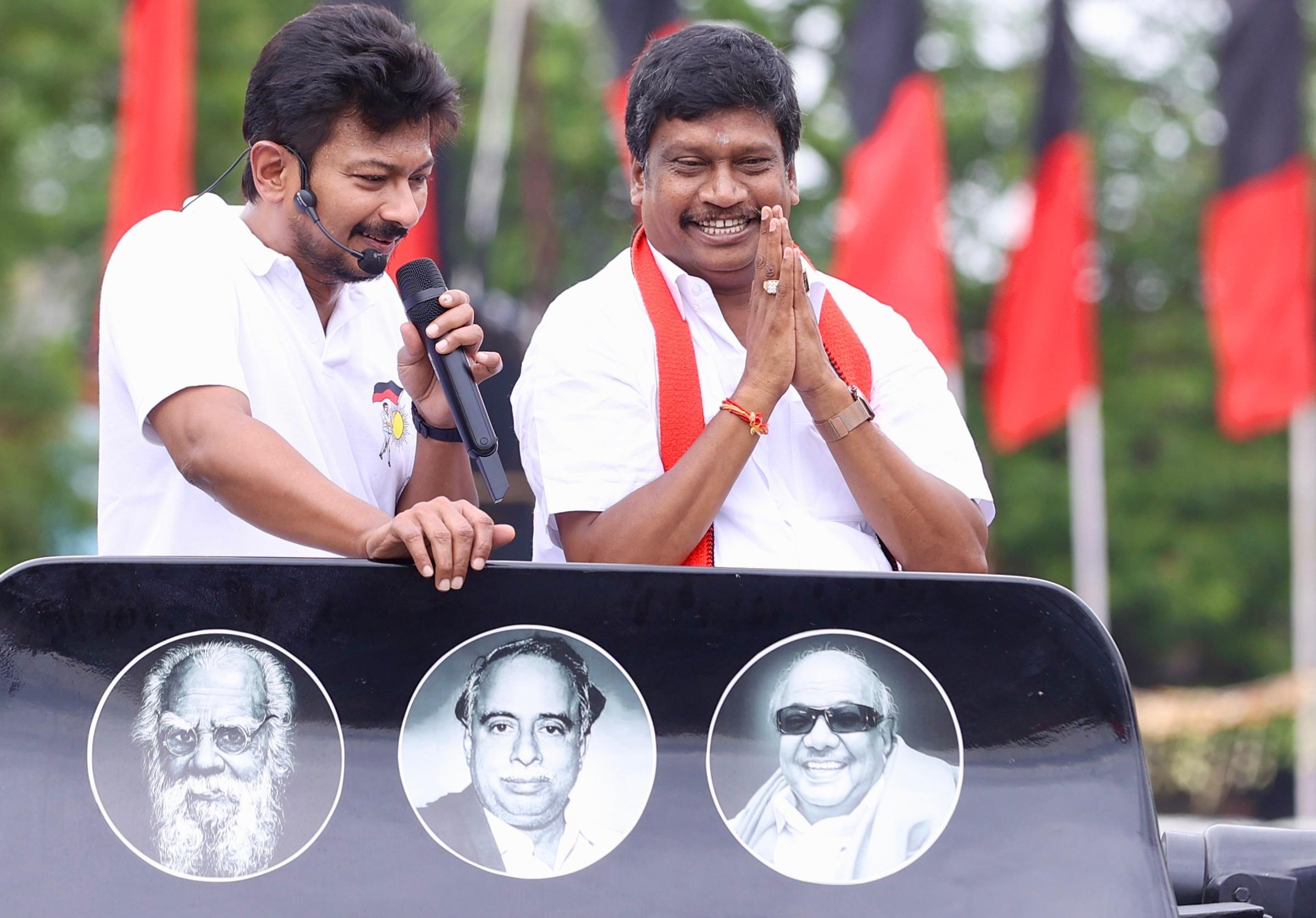 பாஜகவிற்கு வழிவிட்டு, விக்கிரவாண்டி இடைத்தேர்தலை அதிமுக புறக்கணித்துள்ளது என அமைச்சர் உதயநிதி ஸ்டாலின் தெரிவித்துள்ளார். ஜூலை 10ம் தேதி விக்கிரவாண்டி சட்டமன்ற தொகுதியில் வாக்குப்பதிவு நடைபெறவுள்ளது. இதன் காரணமாக விக்கிரவாண்டி இடைத்தேர்தல் பிரசாரம் இன்று மாலை ஓய்கிறது. இந்நிலையில் அரசியல் கட்சி தலைவர்கள் இறுதிக்கட்ட பரப்புரையில் ஈடுபட்டு வருகின்றனர். அந்த வகையில்; தி.மு.க வேட்பாளர் அன்னியூர் சிவாவை ஆதரித்து, அமைச்சர் உதயநிதி ஸ்டாலின் பிரச்சாரம் மேற்கொண்டார். அப்போது பேசிய அவர்; நாடாளுமன்ற தேர்தலில் 40 தொகுதிகளிலும் வெற்றி பெற வைத்த மக்களுக்கு நன்றி.