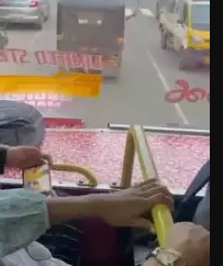 கைது செய்யப்பட்ட சம்சுதீன், அரிவாளை கூர்படுத்துவதற்காக கொண்டு சென்றுள்ளார். அப்போது பேருந்து ஓட்டுநர் தொடர்ந்து பலமுறை ஹாரன் அடித்ததால் கோவமான சம்சுதீன் அரிவாளை எடுத்து காட்டியதாக காவல்துறை தரப்பில் தெரிவிக்கப்பட்டுள்ளது.