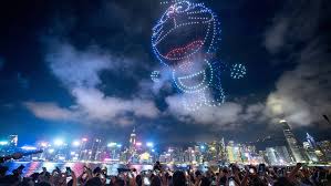 சீனாவில் உள்ள ஹாங்காங்கின் சாலிஸ்பரி சாலையில் இரவு நேரத்தில் 1000 ட்ரோன்களை பயன்படுத்தி ‘டோரிமான்’ கதாபாத்திரங்கள் வானில் காட்சிப்படுத்தப்பட்டன.