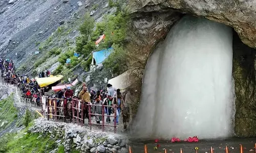 காஷ்மீரில் அமர்நாத் குகைக்கோவில் உள்ளது. கடல் மட்டத்தில் இருந்து 3 ஆயிரத்து 880 மீட்டர் உயரத்தில் அமைந்துள்ளது. அதில், ஆண்டுதோறும் பனிக்கட்டிகளால் ஆன சிவலிங்கம் இயற்கையாக உருவாகும். அதைக்காண லட்சக்கணக்கானோர் புனித யாத்திரையாக செல்வார்கள்.