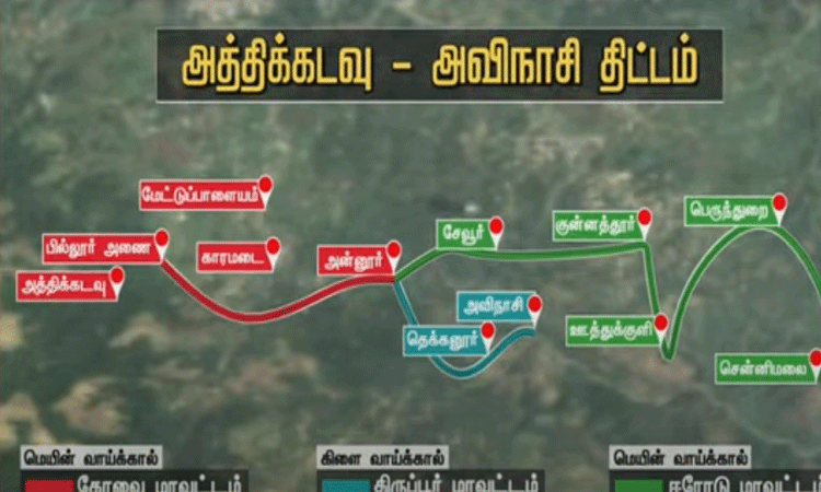 கோவை, திருப்பூா், ஈரோடு ஆகிய 3 மாவட்டங்களைச் சோ்ந்த 1,045 குளம், குட்டைகளில் நீா் நிரப்பி அதன் மூலமாக நிலத்தடி நீா்மட்டத்தை உயா்த்துவது மற்றும் விவசாயம், குடிநீா் உள்ளிட்ட தேவைகளுக்காக தொடங்கப்பட்டதுதான் அத்திக்கடவு-அவிநாசி திட்டம். 50 ஆண்டு கால கோரிக்கையை நிறைவேற்ற வலியுறுத்தி 2016-ஆம் ஆண்டு அவிநாசியில் பலரும் தொடா் பட்டினிப் போராட்டத்தில் ஈடுபட்டனா்.