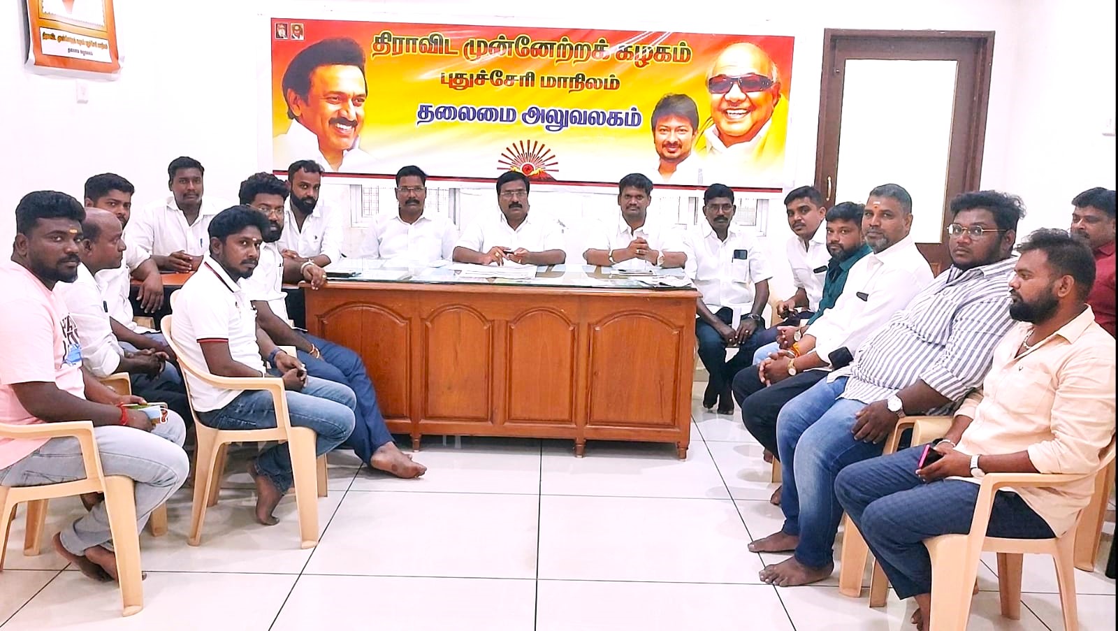 அதன் அடிப்படையில் புதுச்சேரி மாநில இளைஞர் அணி சார்பில் பேச்சுப் போட்டி நடத்துவது குறித்த அவசர ஆலோசனைக் கூட்டம் லப்போர்த் வீதியில் உள்ள திமுக தலைமை அலுவலகத்தில் நடந்தது.