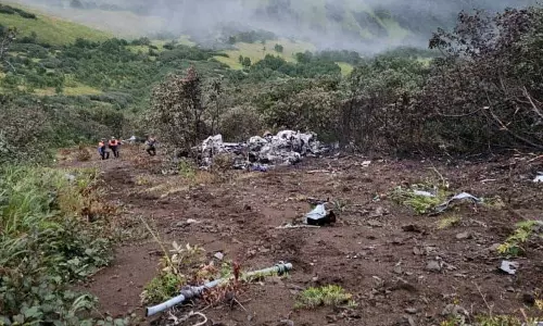 ஹெலிகாப்டரின் பாகங்கள் கண்டறியப்பட்டன. மோசமான வானிலை காரணமாக விபத்து நடந்திருக்கலாம் எனக் கூறப்படுகிறது.