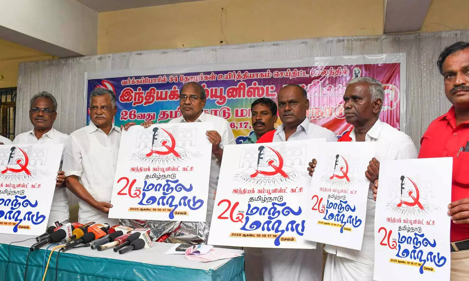 சேலத்தில் இந்திய கம்யூனிஸ்டு கட்சியின் 26-வது மாநில மாநாடு ஆகஸ்ட் மாதம் 15-ந்தேதி தொடங்கி 18-ந்தேதி வரை 4 நாட்கள் நடைபெறுகிறது.