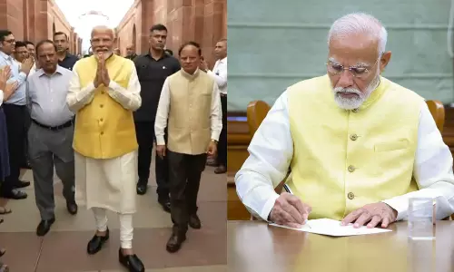 பிரதமர் மோடி இன்று தனது அலுவலகத்துக்கு சென்றதும் ‘பி.எம் கிசான் நிதி’ எனப்படும் விவசாயகள் நலன் சார்ந்த திட்டத்தில் முதலாவதாக கையொப்பமிட்டுள்ளார்.