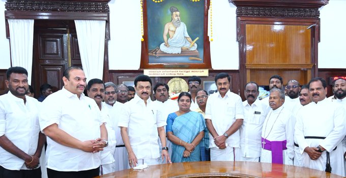 தமிழ்நாட்டில் முதன் முதலில் அச்சு இயந்திரத்தை நிறுவி தமிழுக்குப் பெருமை சேர்த்த சீகன் பால்கு அவர்களுக்கு சிலையுடன் கூடிய அரங்கம் அமைக்கப்படும் என்று அறிவித்தமைக்காக தமிழ் சுவிசேஷ லுத்ரன் திருச்சபையின் பிஷப் டேனியல் ஜெயராஜ், திரு. ஜீவராஜ் குருக்கள், திரு. சார்லஸ், திரு. எட்வின் சார்லஸ், திரு. செல்லதுரை, திரு. சாலமன், திரு. பாரதி, திரு. ஜஸ்டின், திரு. சத்தியமூர்த்தி, திருமதி பிரசன்னா மெர்சிபாய், திரு. என்வால் துரை, திரு. ஈஸ்டர் ராஜ், இவான்ஜிலுக்கல் லுத்ரன் திருச்சபையின் திரு. ஸ்டான்லி ஜோசப், திரு. ஆண்ட்ரூஸ் வாசுதேவன், திரு. அன்பழகன், கிரைஸ்ட் லுத்ரன் திருச்சபையின் டாக்டர் ஸ்டான்லி ஜோஸ், உபதேசியார் நலவாரிய துணைத் தலைவர் போதகர் பால் தயாநிதி, உறுப்பினர் நிக்சன், தென்னிந்திய திருச்சபையின் ஹேமில்டன் மற்றும் திரு. சாம்சன், திரு. ஜான்சன் மான்சிங், ஜான் சிம்சன் ஆகியோர் முதலமைச்சர் ஸ்டாலினை